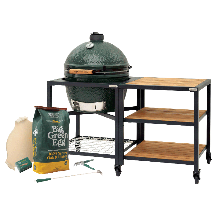 XL Big Green Egg in Modular Nest with Expansion and 3 Acacia Inserts Package